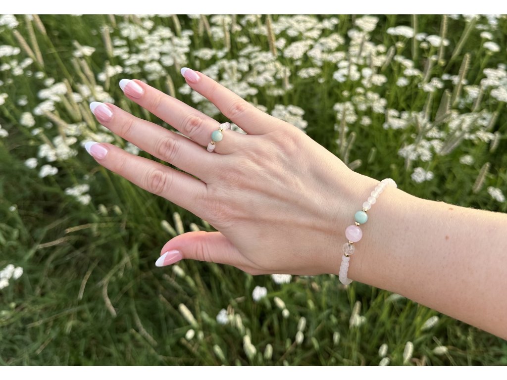 Doplňte svůj look prstýnkem s amazonitem, který podtrhne téma náramku a posílí vaše sebevědomí.