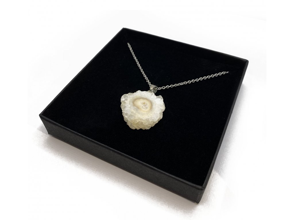 Druh kamene: Přírodní křišťál (drůza), řetízek z chirurgické oceli (316L)