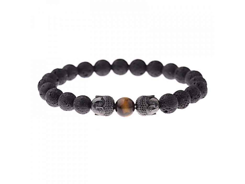 Materiál: Přírodní tygří oko a lávové kameny, komponent buddhy z hematitu