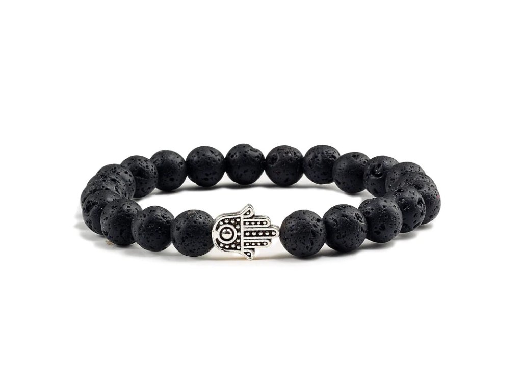 Náramek - Hamsa (láva, stříbrný)
