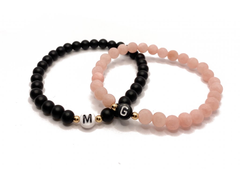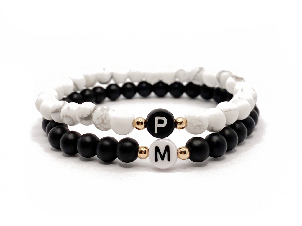 Elegantní párové náramky s iniciálami - Howlit & Onyx / Jadeit & Onyx