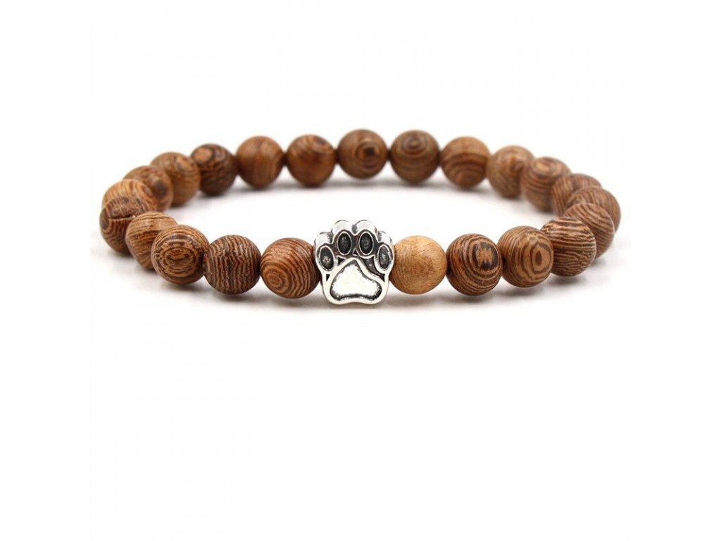 Náramek - Psí tlapka (dřevo, stříbrný)