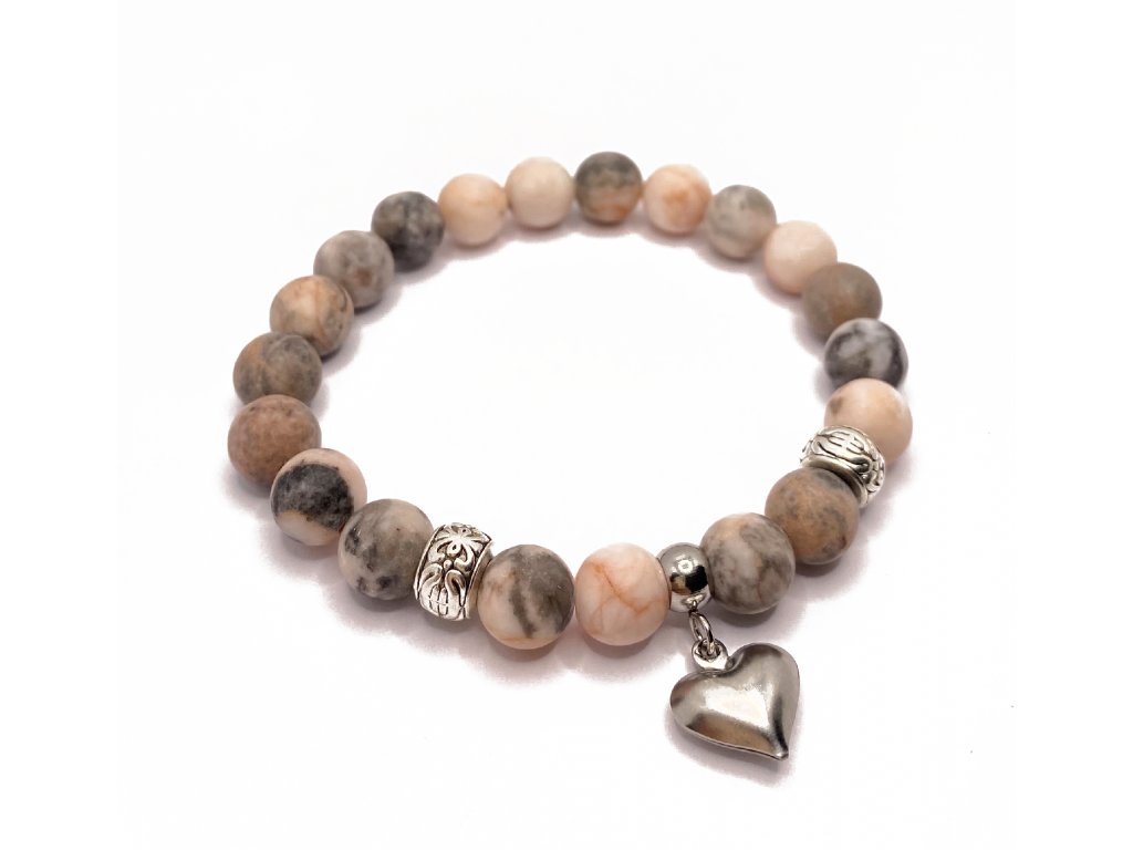 Náramek - Srdce (růžová zebra - přírodní jaspis)