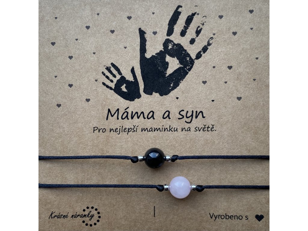 Náramky na provázku - Máma a syn (růženín/obsidián)