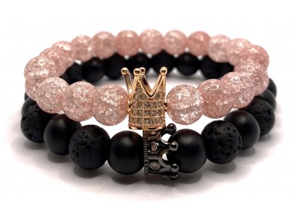 Naramek pro páry - King and Queen (láva, korále, černý)
